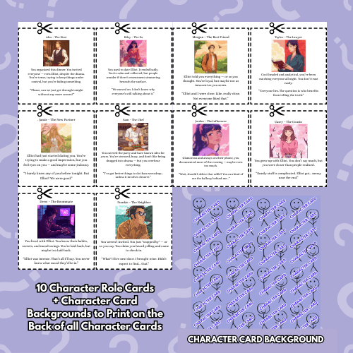 Print on regular paper or cardstock, cut out the cards, and you're ready to solve a murder tonight.