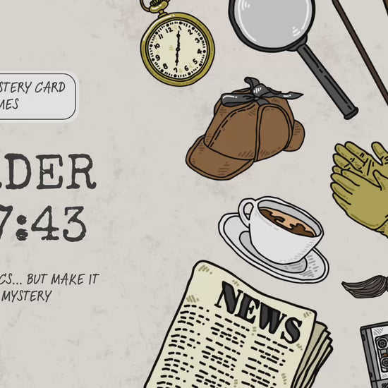 Murder at 7:43 is a printable murder mystery party game with no setup, no scripting, and no need for a game master. It’s built for 2 to 10 players, making it perfect for game nights, dinner parties, or couples looking for a clever 2-player mystery.