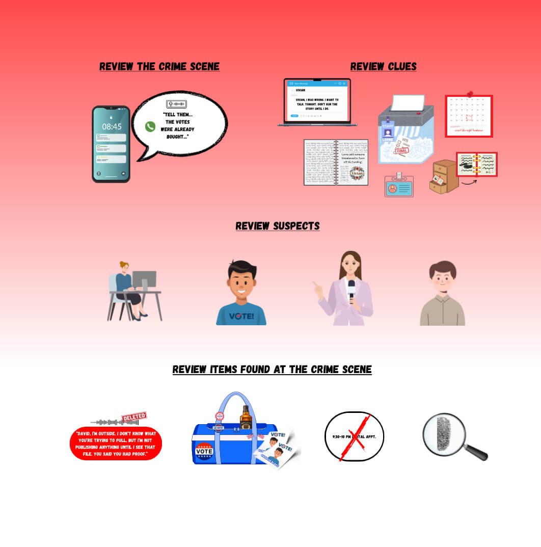 4 Suspect Profiles – Each with a motive, secrets, and shady connections